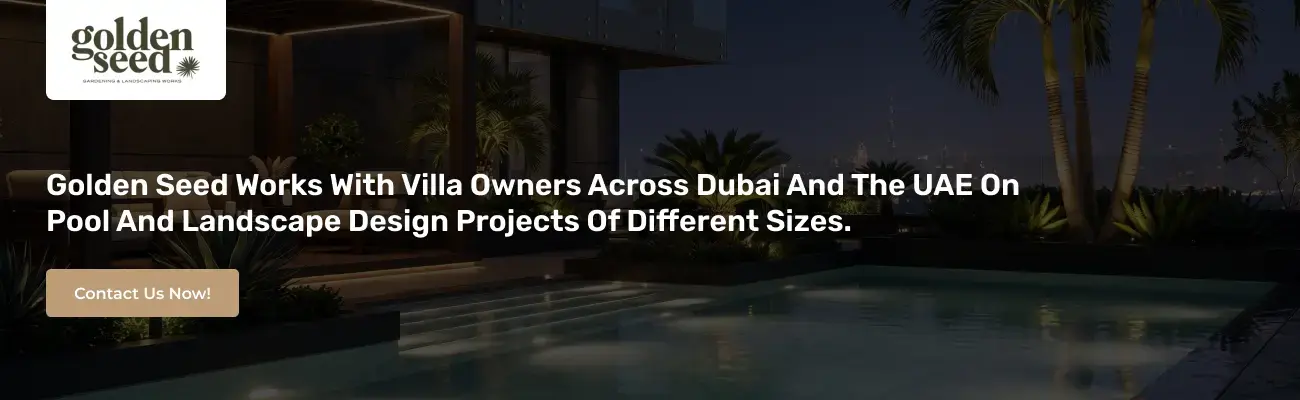 Quick Answer: If you own a villa in Dubai and want a swimming pool designed alongside proper landscape planning, you need a team that understands both the climate and the way luxury homes in the UAE are actually built and used. The best pool and landscape projects in Dubai bring hardscape, softscape, lighting, and water features together around the pool so the whole outdoor space feels connected. Golden Seed offers end-to-end landscaping and pool design services in Dubai for villas across communities like Dubai Hills, Al Barari, Palm Jumeirah, and Arabian Ranches.